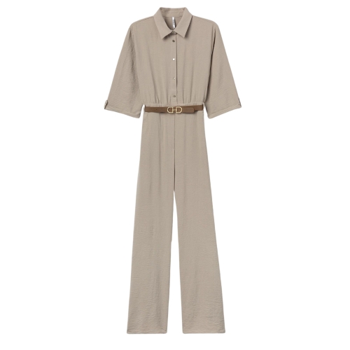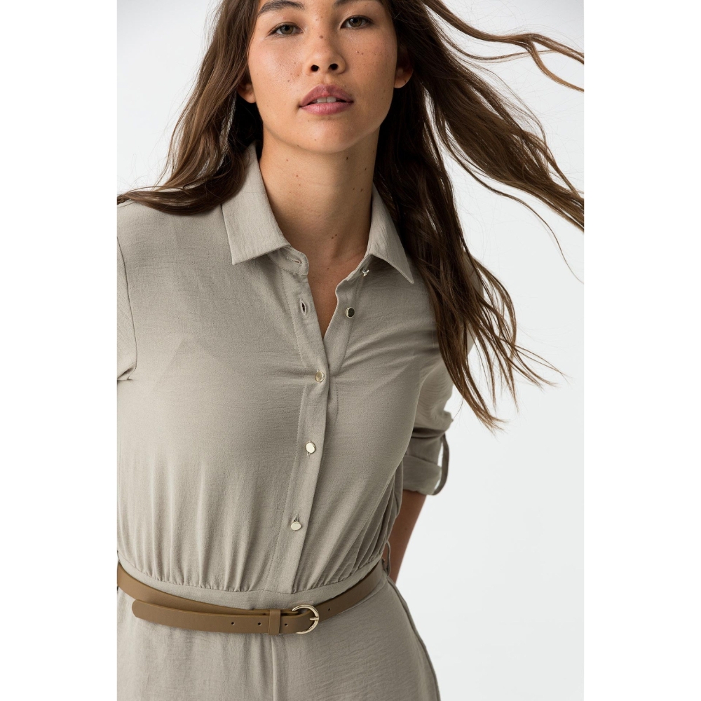 Mono largo de punto texturizado con cintura elástica y cinturón. Escote en pico, abertura frontal con cierre de botones metálicos y manga larga100% POLYESTER