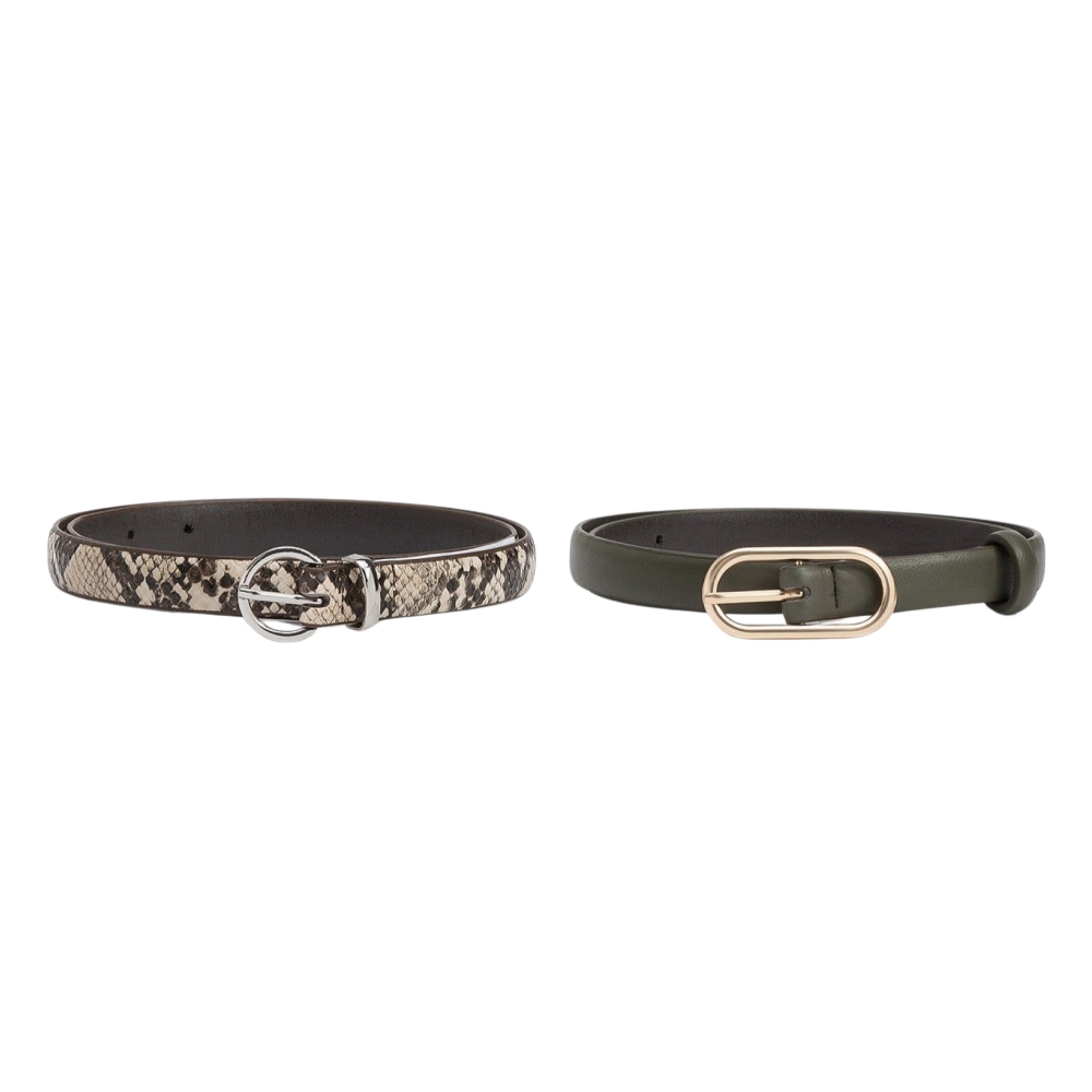 Cinturón efecto piel con hebilla metálica, diseño elegante y ajuste cómodo en la cintura.100% POLYURETHANE