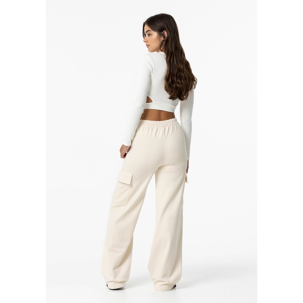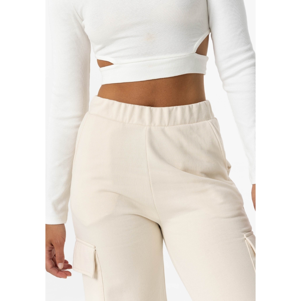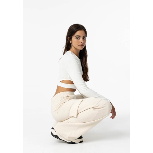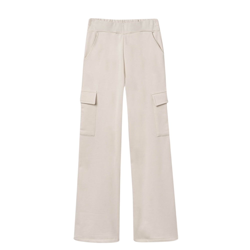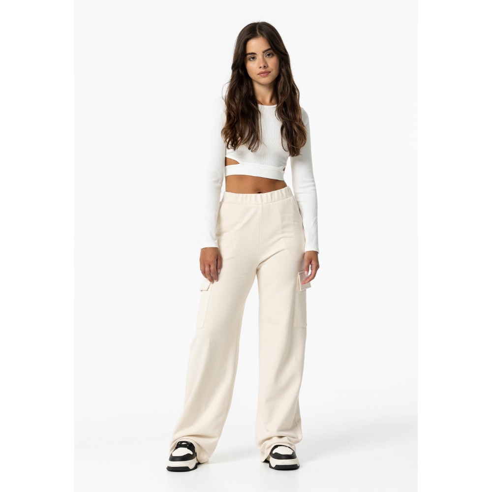 Pantalón de tiro medio con cinturilla elástica. Detalle de bolsillo con solapa tipo cargo en lateral.