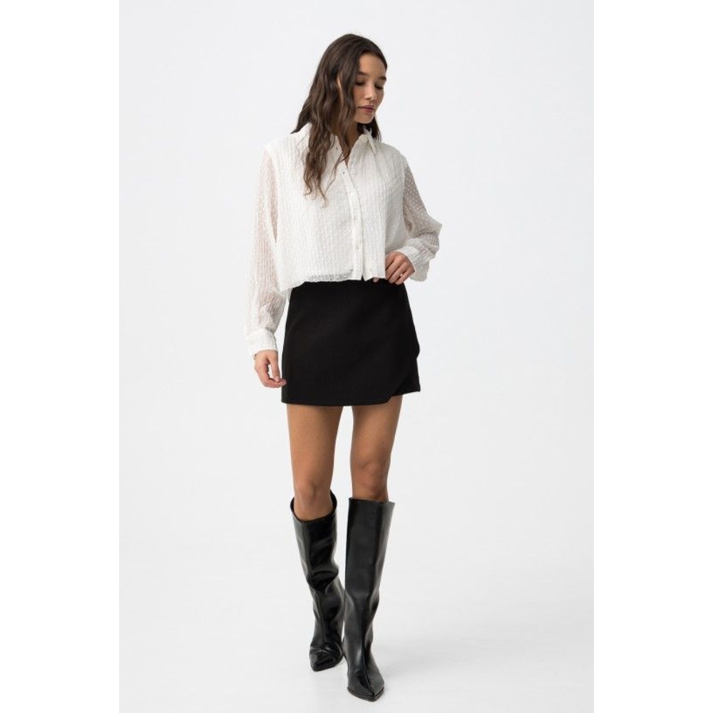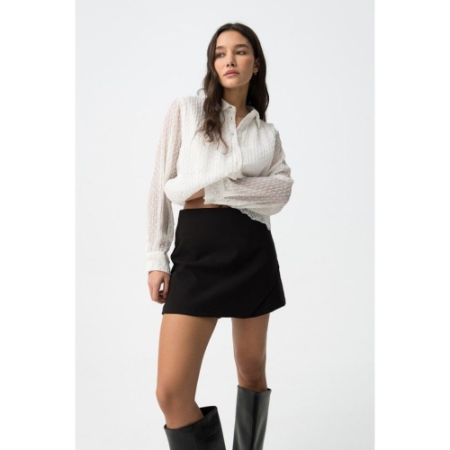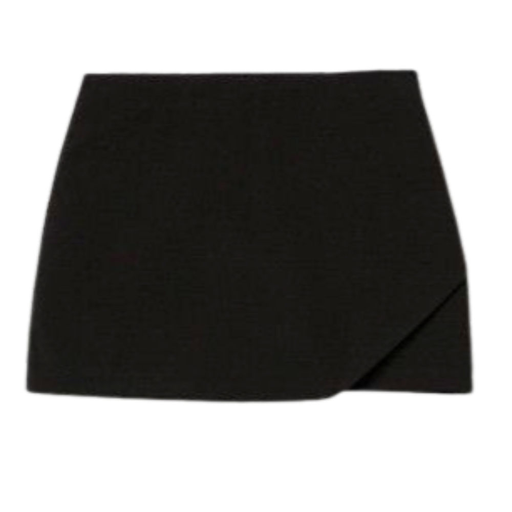 Shorts negros slim fit, elegantes y minimalistas, perfectos para un look casual chic.72% POLIÉSTER 23% VISCOSA 5% ELASTANO