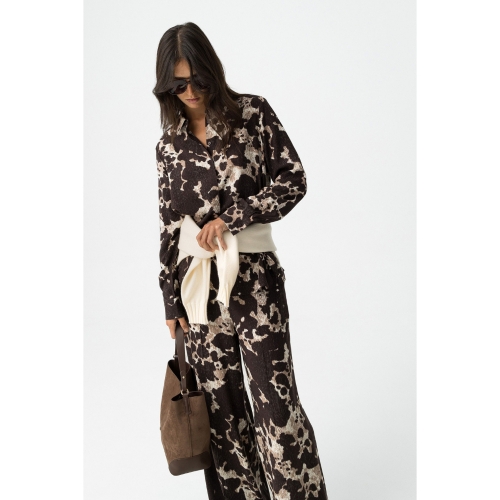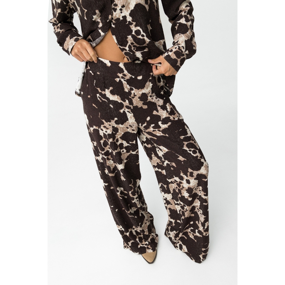 Pantalones palazzo con estampado animal all over, dos bolsillos frontales y cierre lateral de cremallera.100% VISCOSE