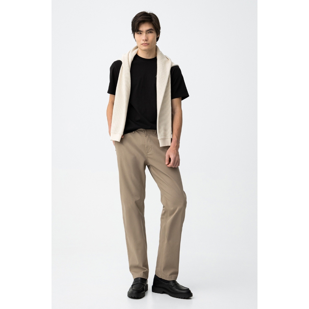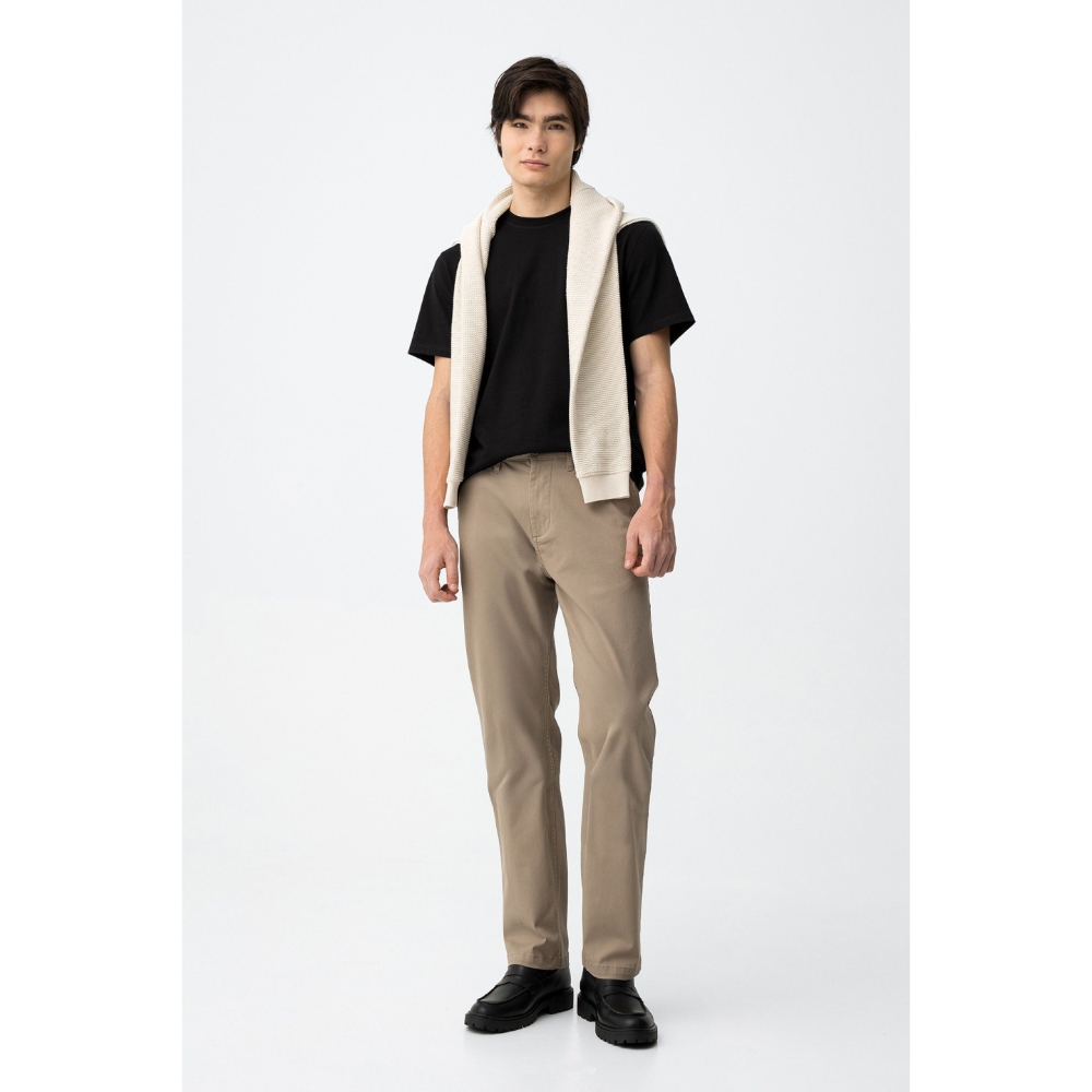 Pantalón largo en color beige, corte recto y relajado, con bolsillos laterales y cierre clásico.98% COTTON 2% ELASTANE