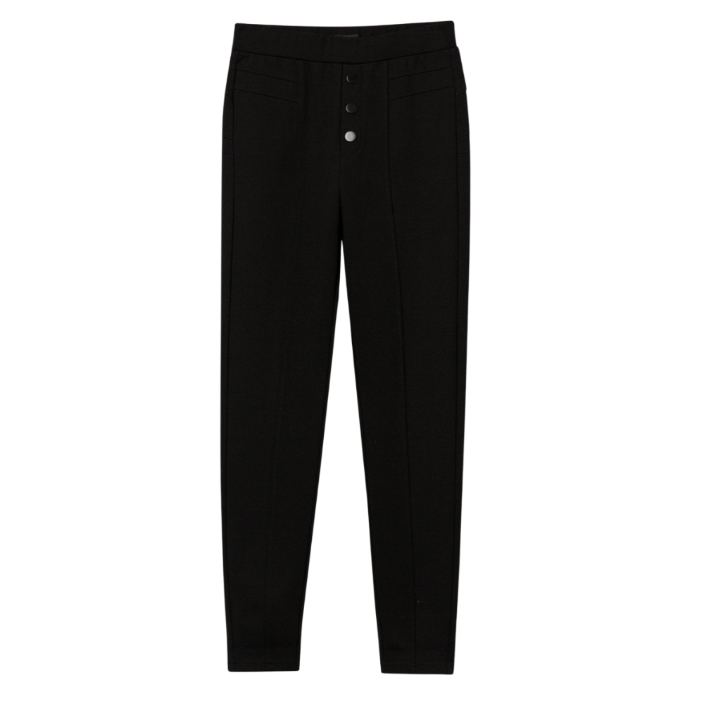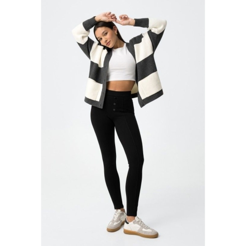 Leggings skinny fit a cuadros. Cintura alta con tres botones frontales. Costuras verticales. Tejido elástico.