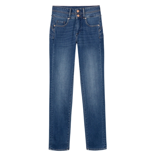 Medias de tiro alto con cinco bolsillos. Cierre frontal de cremallera con botones metálicos. Efecto push-up y push-in.99% CO 1% EL