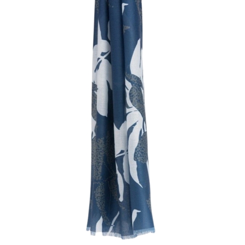 Pañuelo rectangular con estampado tricolor y acabado deshilachado.100% POLYESTER