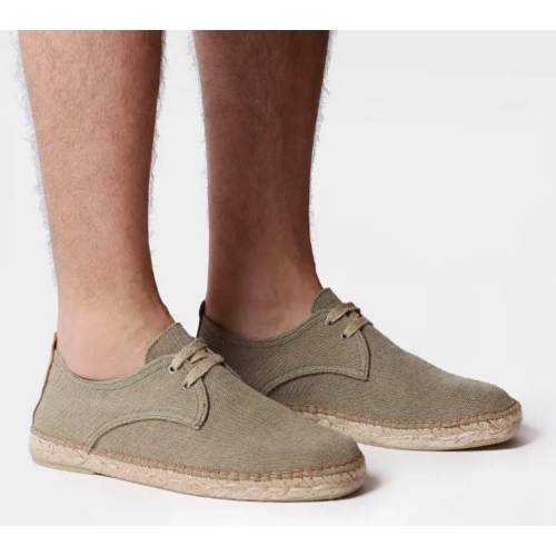DIXON. Esta alpargata para hombre con cordones está elaborada en tejido de algodón y yute. La suela es de yute y su base de goma antideslizante. La plantilla interior está forrada en algodón. Este diseño está cosido a mano en España.
