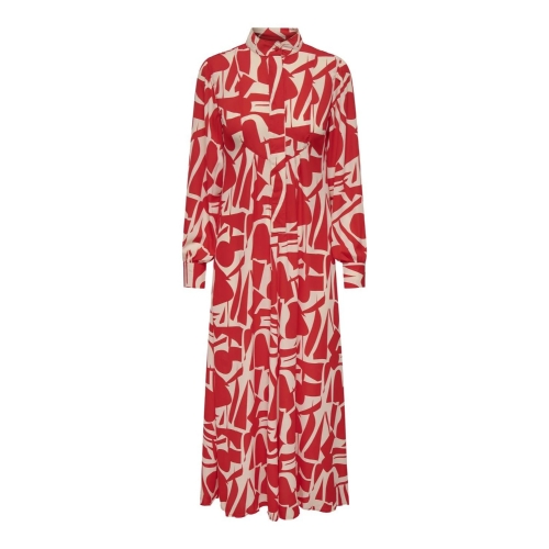 Vestido largo de la marca Only para mujer, cuello mao con manga larga y corte loose. Color rojo estampado