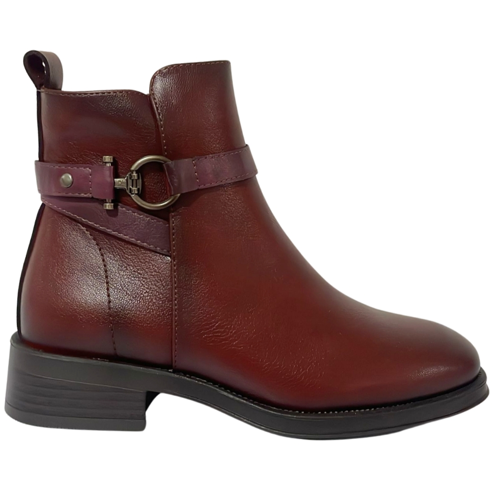Botin plano con cremallera lateral para mujer. Color burdeos