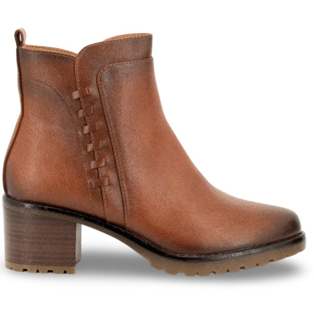 Botin con tacon medio para mujer. Cierre con cremallera lateral. Color cuero