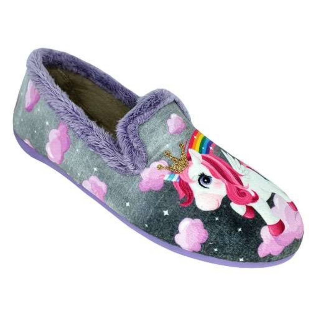 Zapatilla talón cerrado de la marca Vulcabicha para niña. Color gris con unicornio