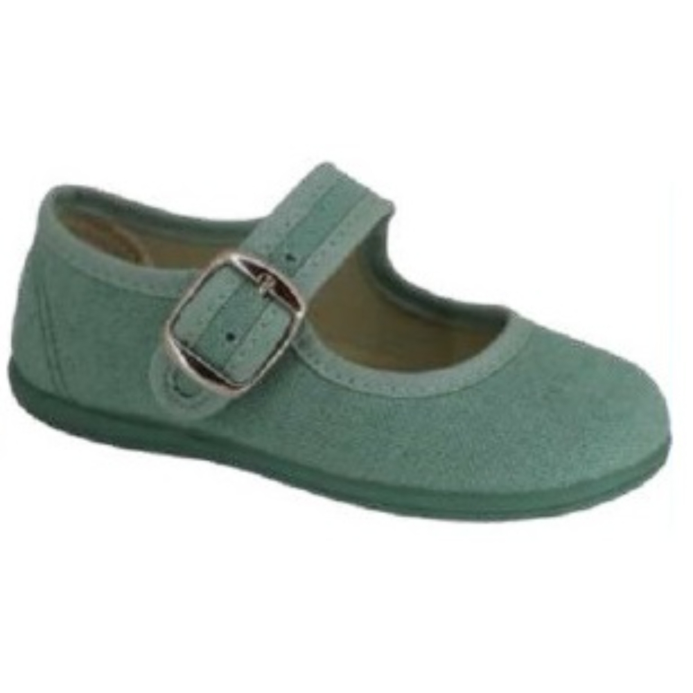 Merceditas de lona con cierre de hebilla para un mayor ajuste y comodida. Color verde