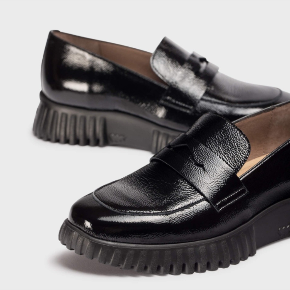 Mocasines FLEXFLY 02 fabricados en piel charol negra. Con construcción de mocasín clásico, mejorado con un toque deportivo y a la moda. Detalle de antifaz al mismo tono y piel que el zapato. Con punta redonda. Su suela, creada con tecnología WondersFly™ by XL EXTRALIGHT®, garantiza una ligereza excepcional y un confort extraordinario. Además, la plantilla interior extraíble de MemoryGel se adapta perfectamente al pie, proporcionando comodidad en cada paso. Prepárate para sentir la sensación #YesWeFly. Wonders apuesta por una fabricación responsable avalada por
