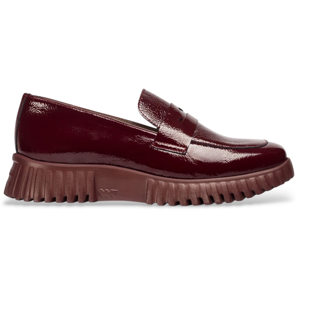 Mocasines FLEXFLY 02 fabricados en piel charol burdeos . Con construcción de mocasín clásico, mejorado con un toque deportivo y a la moda. Detalle de antifaz al mismo tono y piel que el zapato. Con punta redonda. Su suela, creada con tecnología WondersFly™ by XL EXTRALIGHT®, garantiza una ligereza excepcional y un confort extraordinario. Además, la plantilla interior extraíble de MemoryGel se adapta perfectamente al pie, proporcionando comodidad en cada paso. Prepárate para sentir la sensación #YesWeFly. Wonders apuesta por una fabricación responsable avalada por LEATHERWORKINGGROUP.