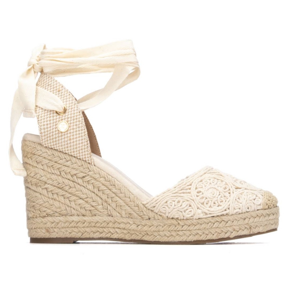 Alpargata de mujer, de la marca Xti. Fabricada en material textil, esta alpargata presenta un diseño sencillo y elegante, ideal para los días soleados. Su cuña de 9 cm, forrada en yute y sin plataforma, estiliza la figura manteniendo un estilo natural y fresco.