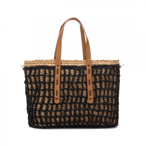 Añade un toque natural a tus looks con este bolso de hombro XTI para mujer. Fabricado en material efecto rafia, combina estilo y frescura. Su cierre con cremallera protege tus pertenencias