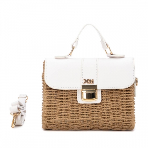 Este bolso bandolera XTI combina funcionalidad y estilo en un solo accesorio. Elaborado en material tipo mimbre que aporta elegancia sin renunciar a la comodidad en tus días de verano