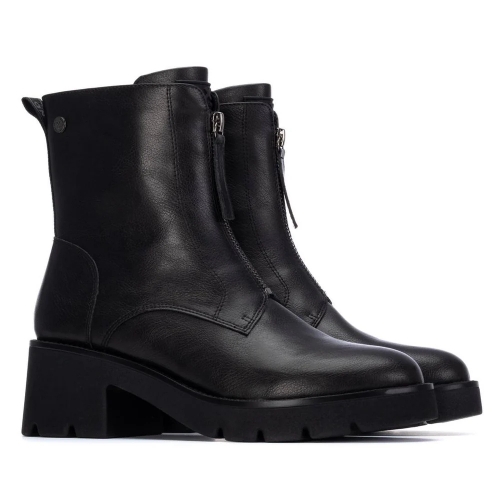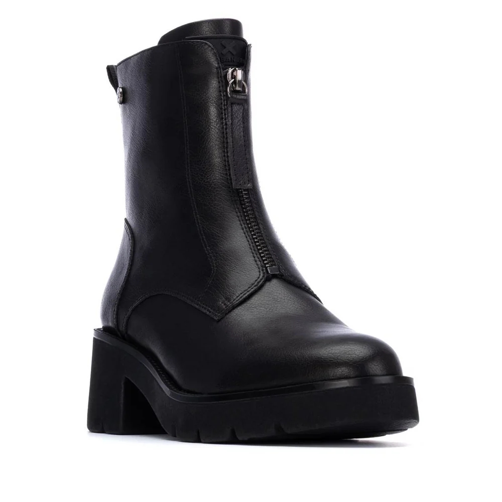 Botín de mujer, de la marca Xti. Fabricado en material que imita la piel, con un diseño elegante y práctico. Este modelo cuenta con una cremallera lateral que facilita su puesta y ajuste. El tacón ancho de 5 cm, fabricado en goma, ofrece una gran comodidad y estabilidad durante todo el día. Su estilo versátil lo hace ideal para combinar con cualquier tipo de look, desde casual hasta más formal. Además, su suela antideslizante asegura seguridad y confort en cada paso. Perfecto para quienes buscan un Botín moderno y cómodo para el día a día. Plantilla extraíble. Este modelo ha obtenido el certificado vegano por la organización mundial PETA (Organización de los derechos de los animales).