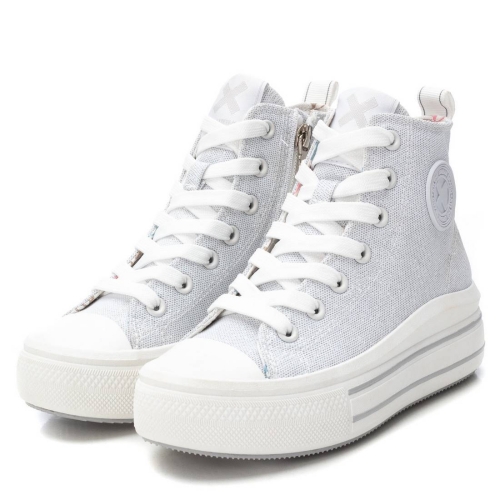 Zapatilla de niña, de la marca Xti Kids. Fabricada en lona metalizada. Cierre cremallera lateral y cordones ajustables. Imprescindible de esta temporada. Tirador trasero para facilitar la puesta. Piso con volumen, cómoda planta y gruesa suela de goma antideslizante. Este modelo ha obtenido el certificado vegano por la organización mundial PETA (Organización de los derechos de los animales).