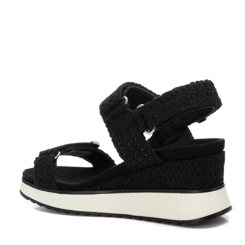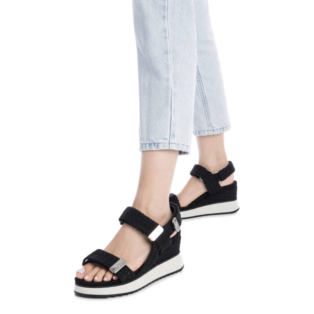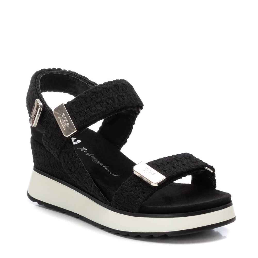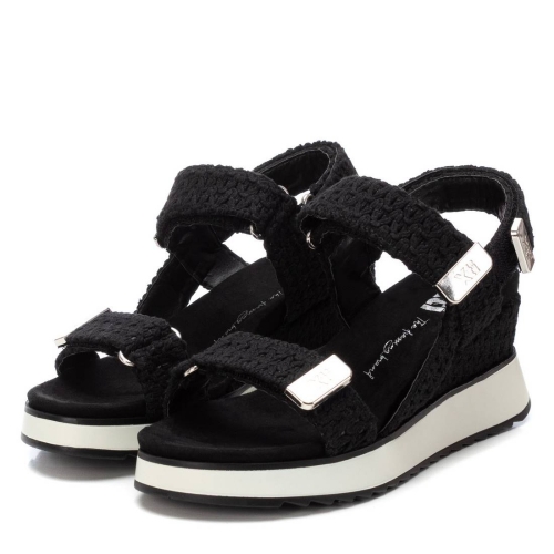 Sandalia de mujer con cuña, de la marca Xti. Fabricada en material textil de crochet, se convertirá en uno de tus esenciales de esta temporada. Detalles metalizados para un mejor acabado. Cierre mediante tira adherente. Planta bios. Cuña de 7 cm con suela de goma antideslizante. Este modelo ha obtenido el certificado vegano por la organización mundial PETA (Organización de los derechos de los animales).