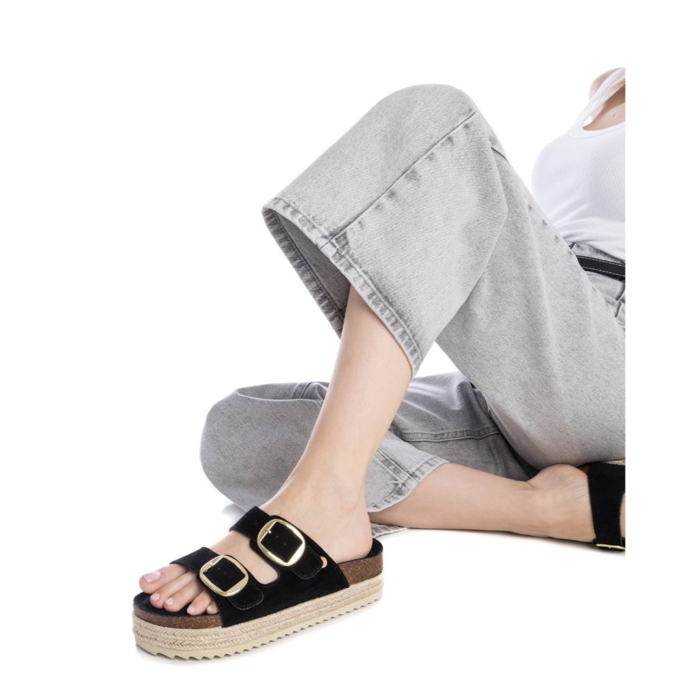 Sandalia de mujer marca Xti. Fabricada en serraje. Hebillas funcionales para un buen ajuste. Cómoda planta bios para disfrutar de los días de verano. Suela de goma antideslizante.