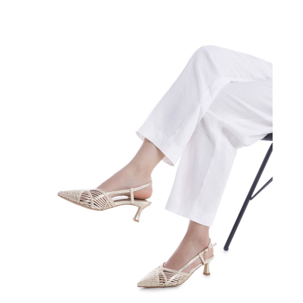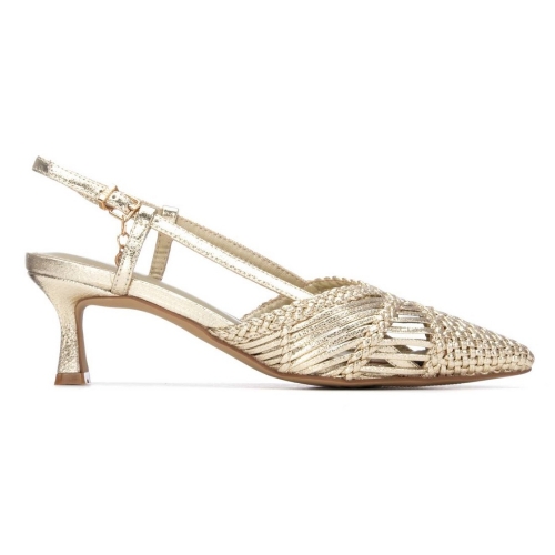 Salón de mujer, de la marca Xti. Fabricado en textil, este modelo combina elegancia y frescura, ideal para los meses de buen tiempo. Su diseño en punta estiliza la silueta, mientras que el tacón de aguja de 6 cm aporta altura con un toque sofisticado. Es un modelo destalonado, con una tira trasera que se sujeta al tobillo mediante hebilla, asegurando una buena sujeción sin perder estilo. Perfecto para ocasiones especiales o para elevar tus looks diarios con un aire natural y actual. Este modelo ha obtenido el certificado vegano por la organización mundial PETA (Organización de los derechos de los animales).