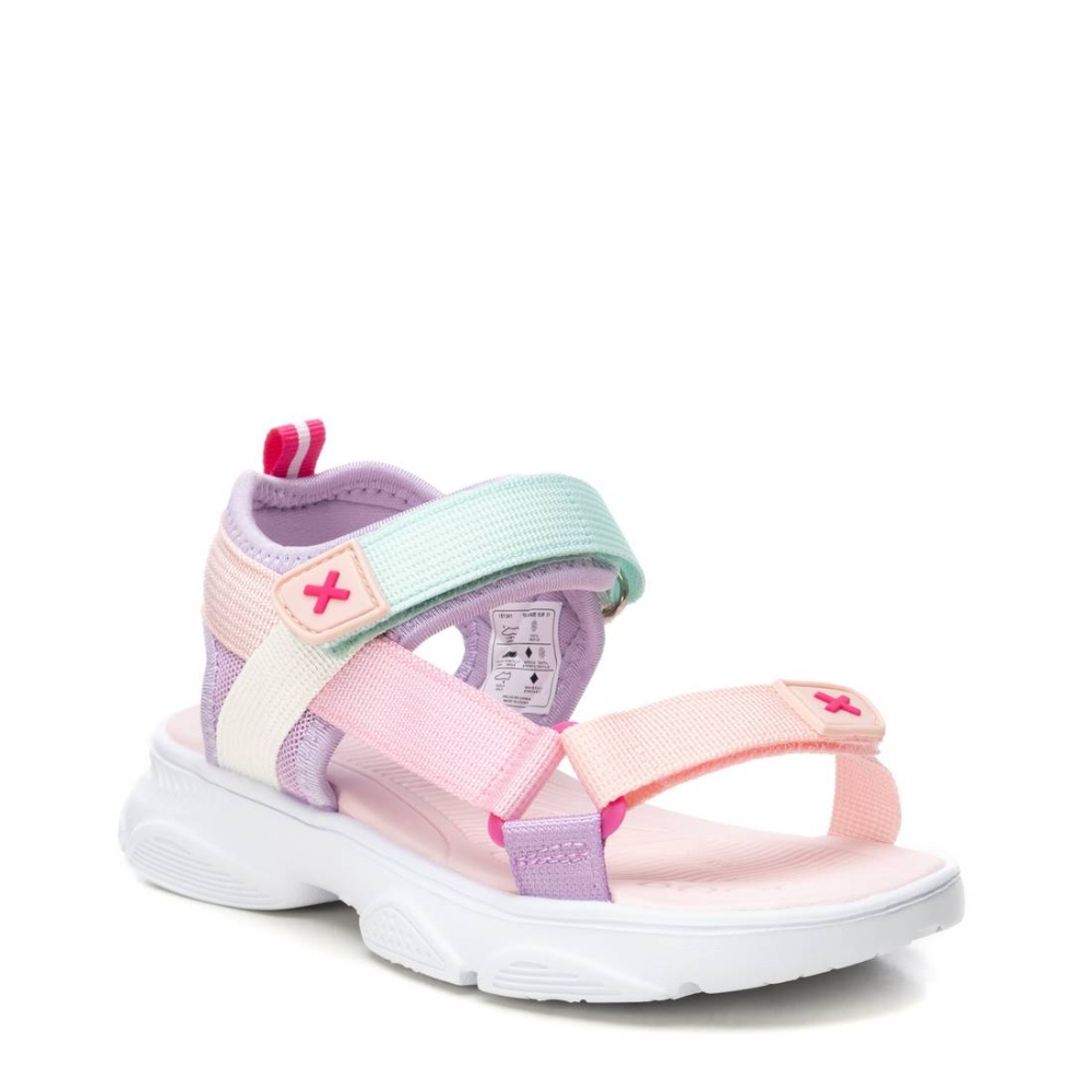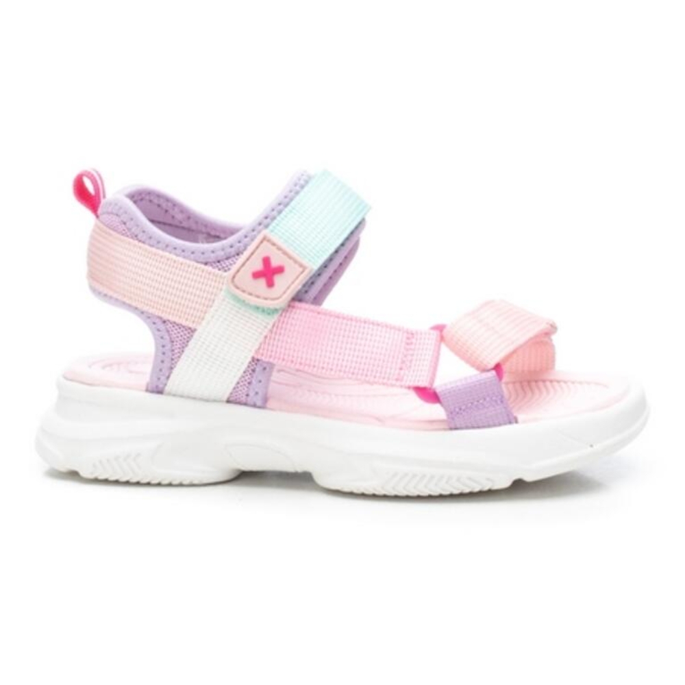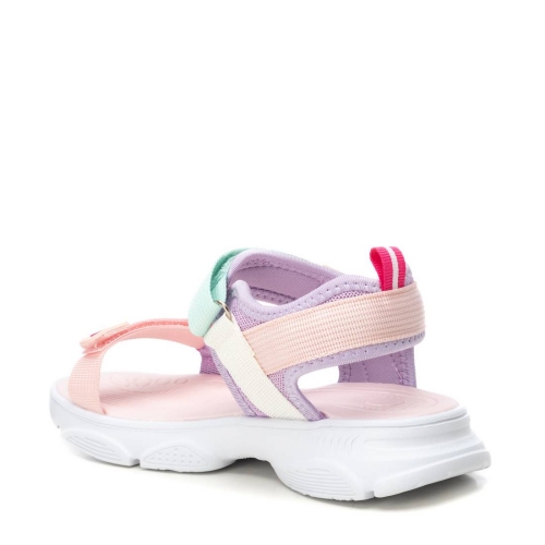 Sandalias de niña, de la marca Xti Kids. Fabricada en material textil. Tiras auto adherentes que ajustan al tobillo. Gruesa suela de goma antideslizante. Ideal para acompañar a la más peque de la casa en todas las aventuras de esta temporada. Este modelo ha obtenido el certificado vegano por la organización mundial PETA (Organización de los derechos de los animales).