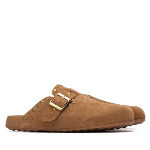 Zueco de mujer, de la marca Xti. Fabricado en material serraje, con un diseño cómodo y natural. Presenta una hebilla decorativa que añade un toque de estilo al modelo. Cuenta con suela tipo bio, que proporciona una pisada ergonómica y confortable, además de ser plana para facilitar el uso diario. Incluye suela antideslizante, para mayor seguridad en cada paso.