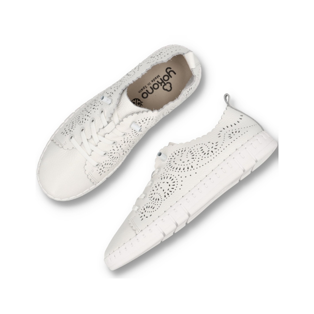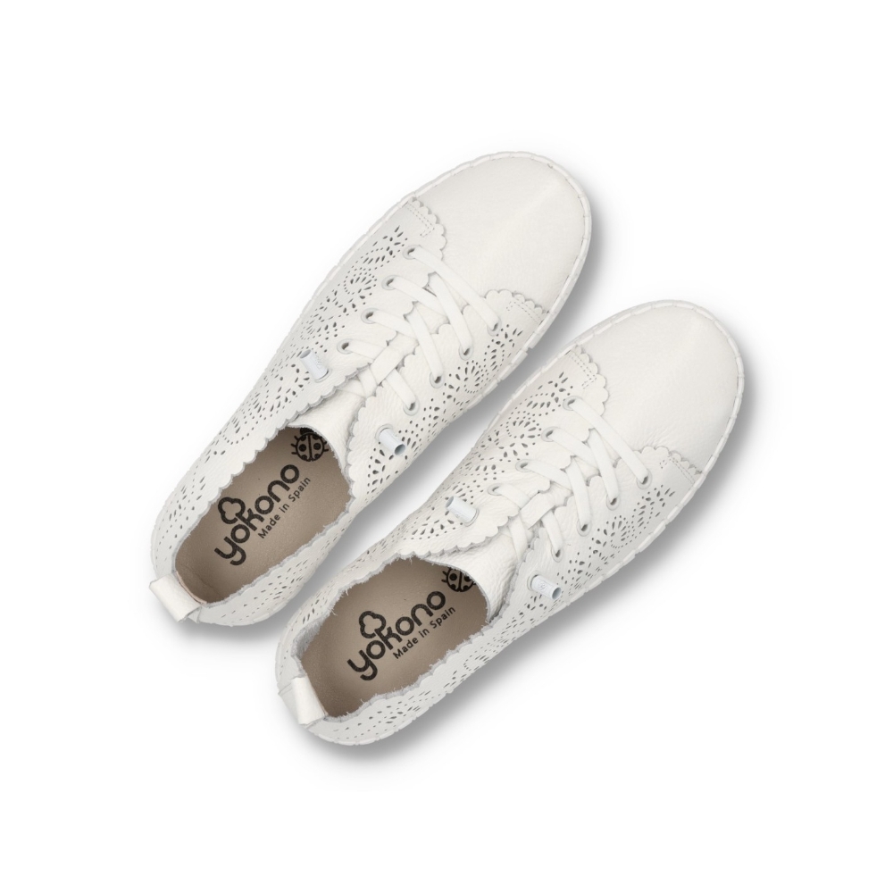 Zapatilla deportiva para mujer FLOW-005 de yokono. Sneakers de piel 100%vacuno con planta memory foam, que aporta un plus de comodidad. Cierre de cordon elástico que facilita la puesta. Suela ligera y cosida al canto. HECHO EN ESPAÑA
