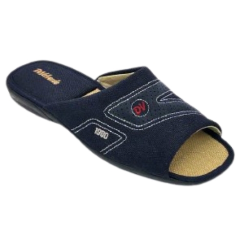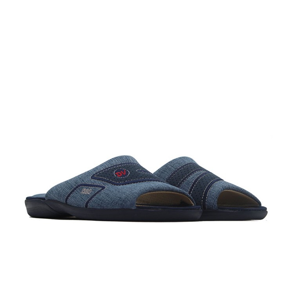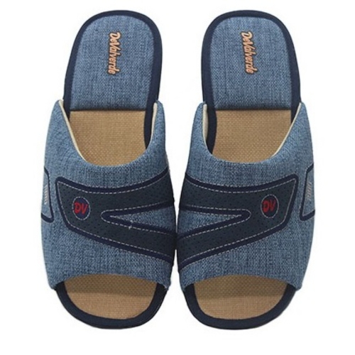 Zapatillas de casa para hombre con talón abierto y dedos fuera, de la marca Devalverde, pantufla hecha en España en textil, Chinela con forro interior en textil y suela de goma muy cómoda.Piso con grabado especial rugoso para evitar posibles deslizamientos. Fabricada con tejidos en microfibras y algodón que permiten una constante ventilación. Suela con relleno de corcho natural para una total absorción de los posibles impactos. Utilizando materiales que cuidan al máximo posible el medio ambiente. Hecho en España.