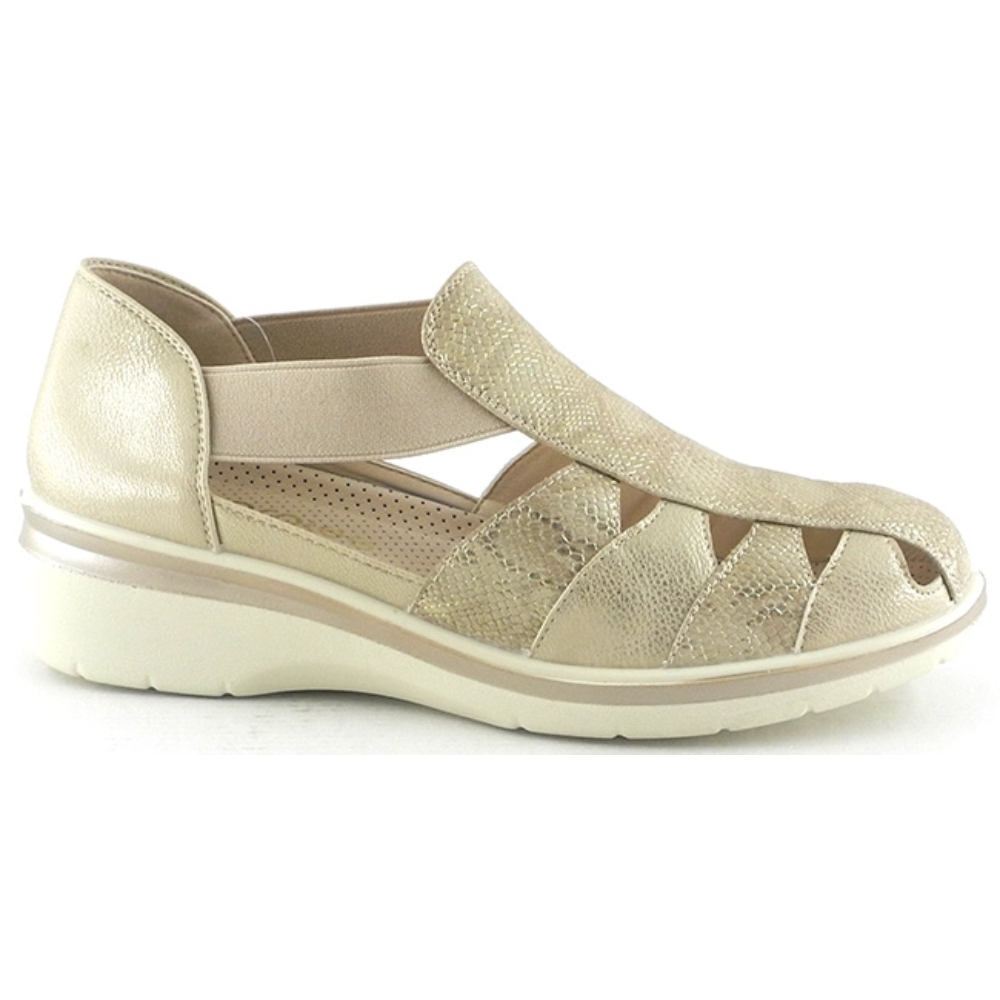 Zapato estilo confort tipo cangrejera con gomas elásticas para un mayor ajuste y comodidad. Color platino
