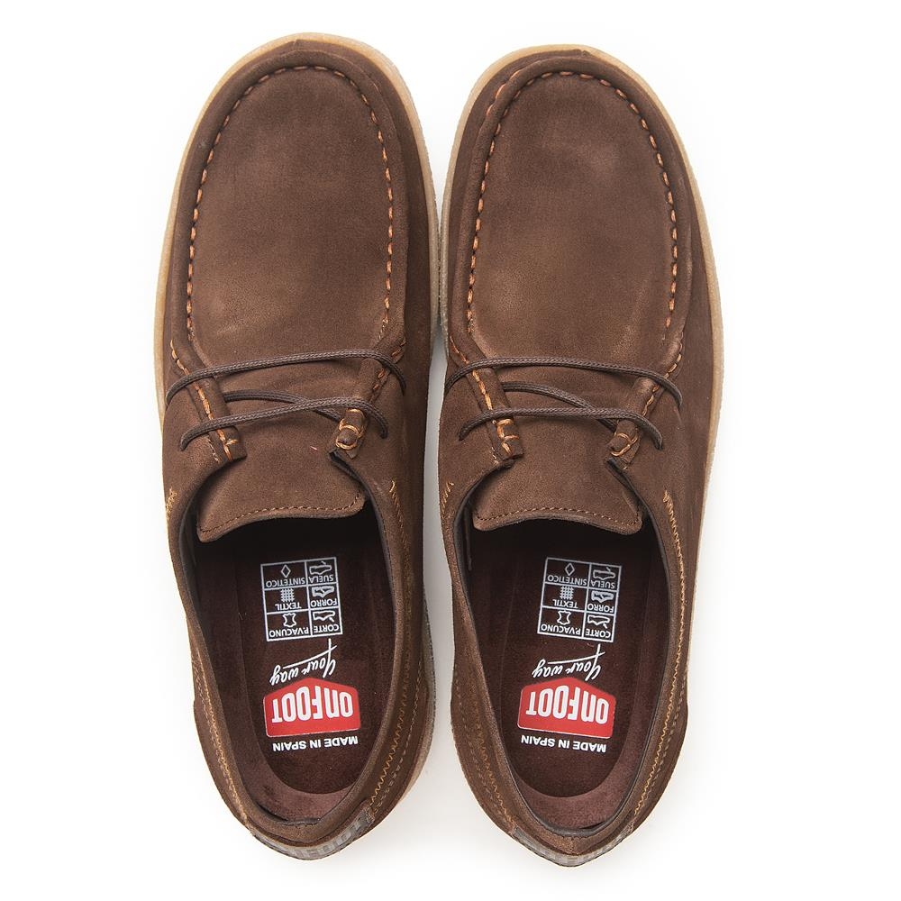 Zapato confort de la marca On foot para hombre. Fabricado con piel de gran calidad y suela de goma para una mayor comodidad. Estilo walaby cosido con cordón. Color testa