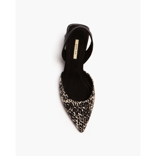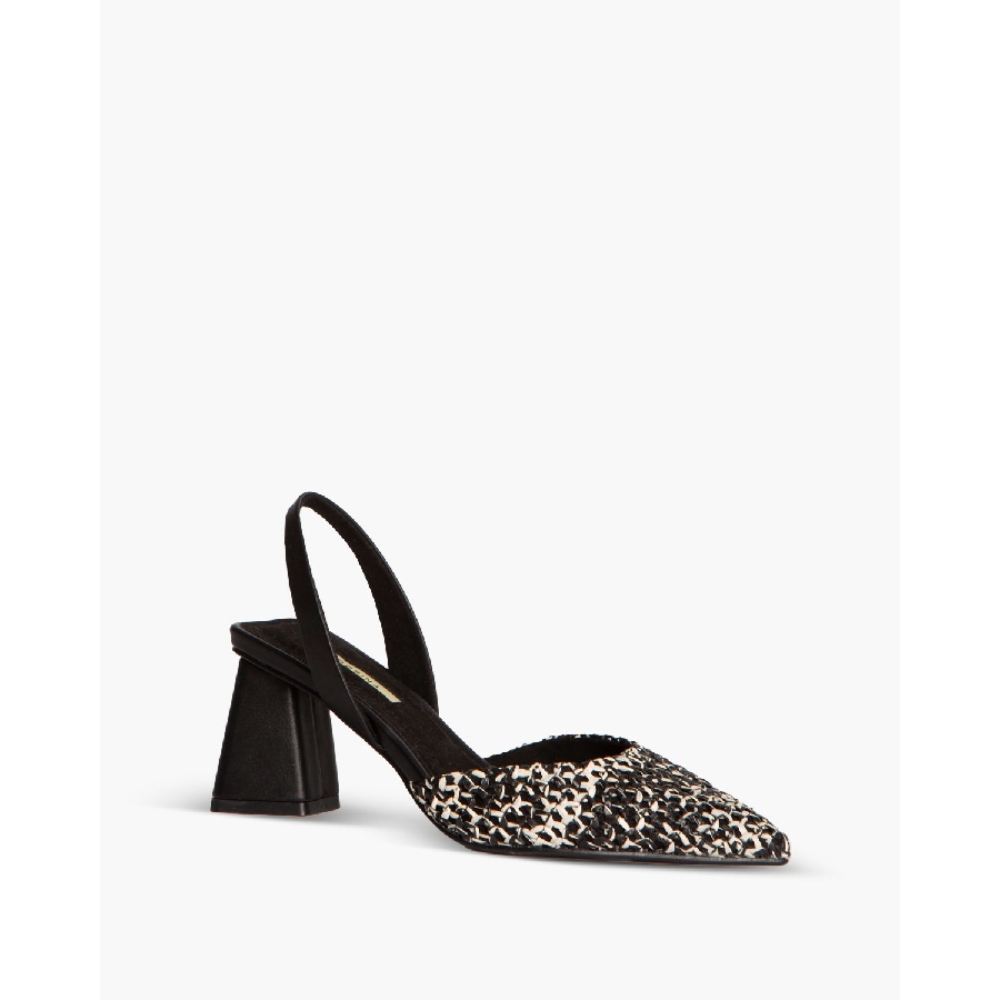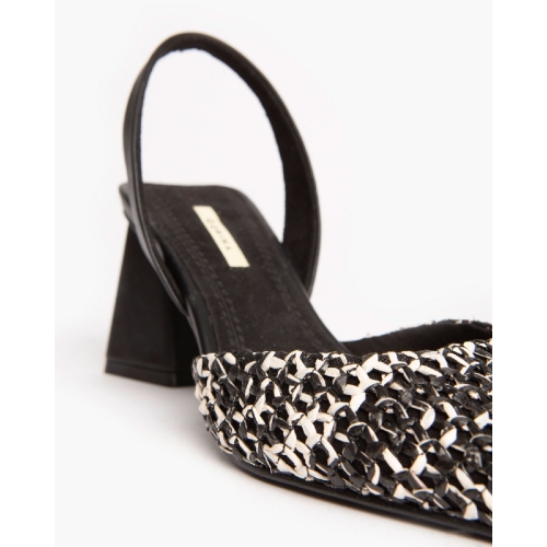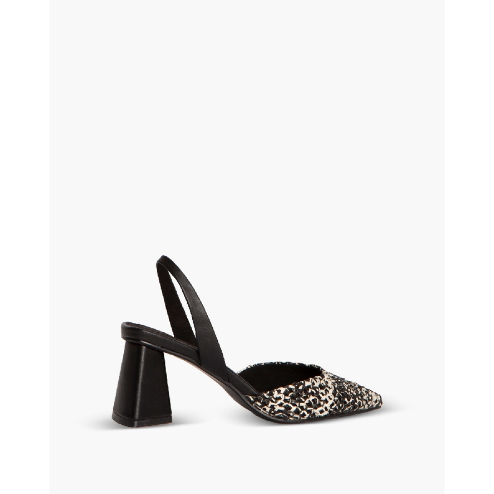 Salón destalonado de tacón medio. Corte en trenzado bicolor y tacón ancho.Altura del tacón 7 cm.