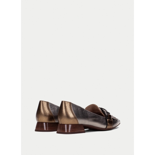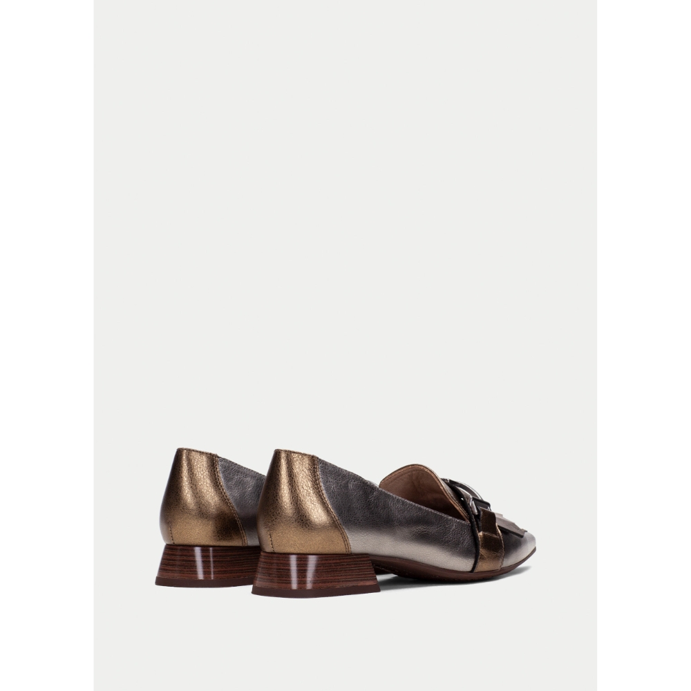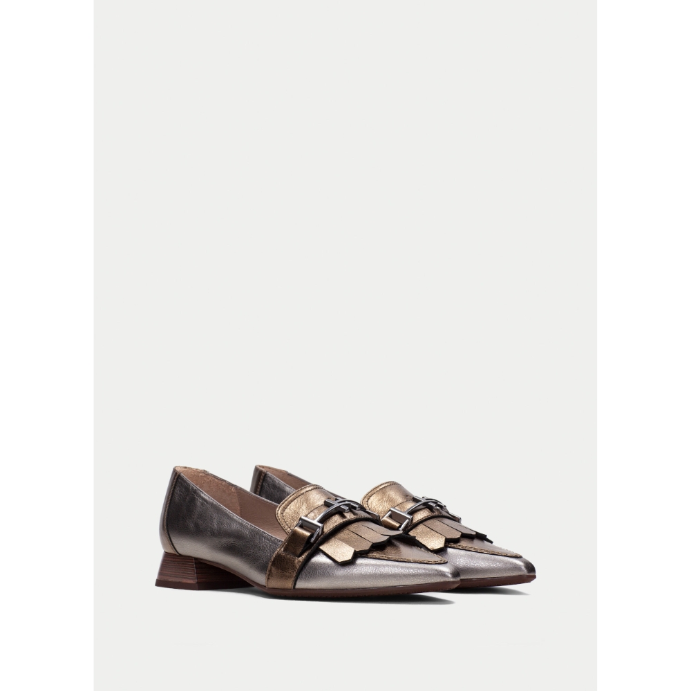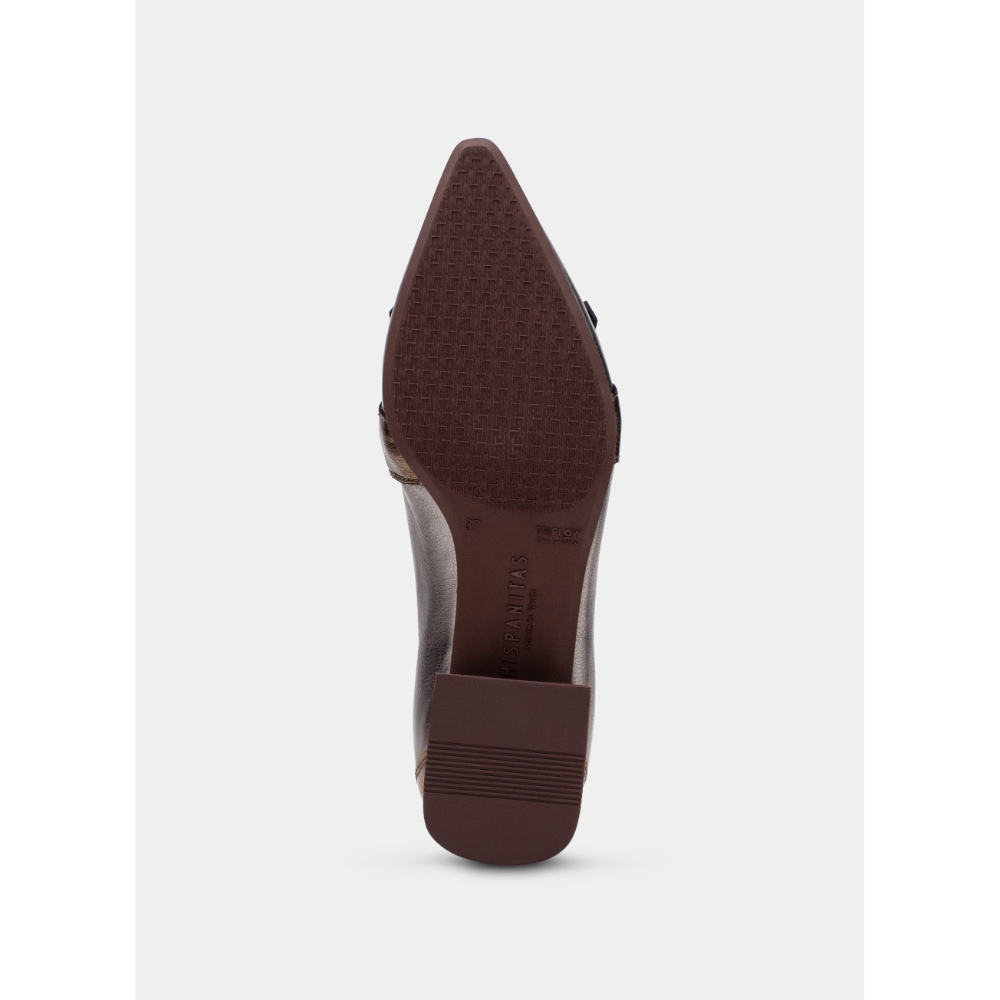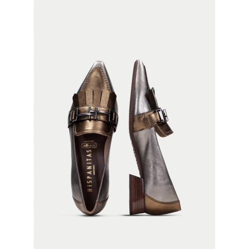 Zapato plano acabado en punta elaborado en piel y tacón de 2,5 cm. Este diseño incorpora el detalle de los flecos y el adorno con la hebilla doble H en la puntera. Este zapato cuenta con la tecnología Triflow, un triple almohadillado que genera un efecto acolchado en la pisada.