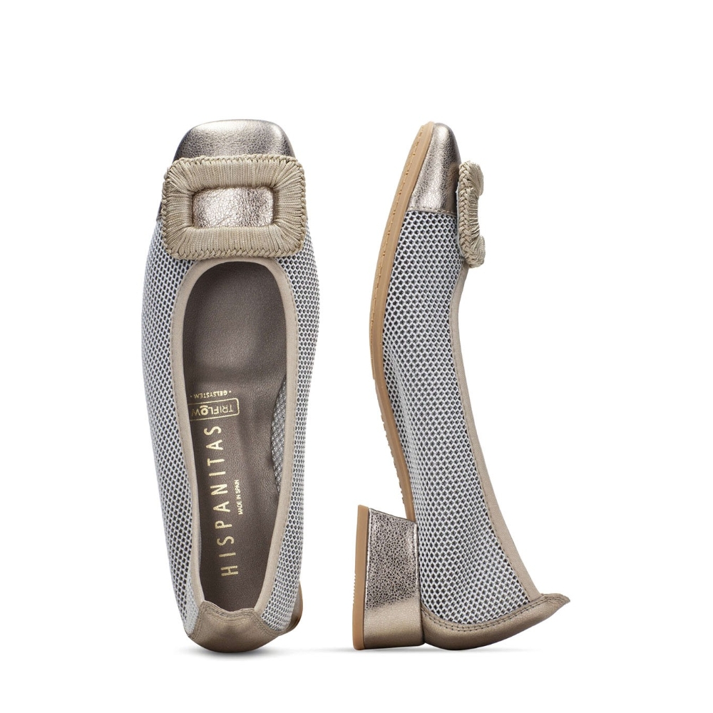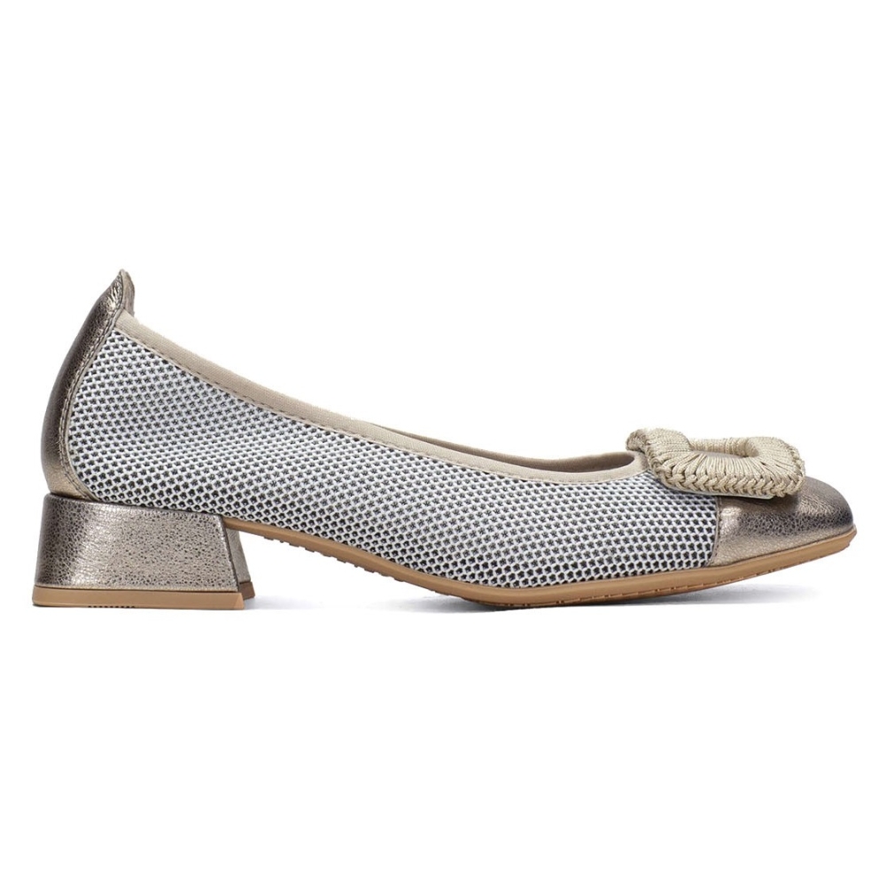 Zapatos con puntera cuadrada elaborados en combinación de poliuretano reciclado y piel natural de excelentes calidades. Diseño de rejilla en color degradado con tacón bajo a tono con la parte trasera del zapato. Incorpora un adorno en la puntera. Además este zapato incorpora la tecnología TRIFLOW, amortigua cada paso aportando flexibilidad y confort en la pisada, gracias a su triple almohadillado. Colores de tendencia esta temporada fáciles de combinar con tus look de primavera. Diseño y fabricación española.