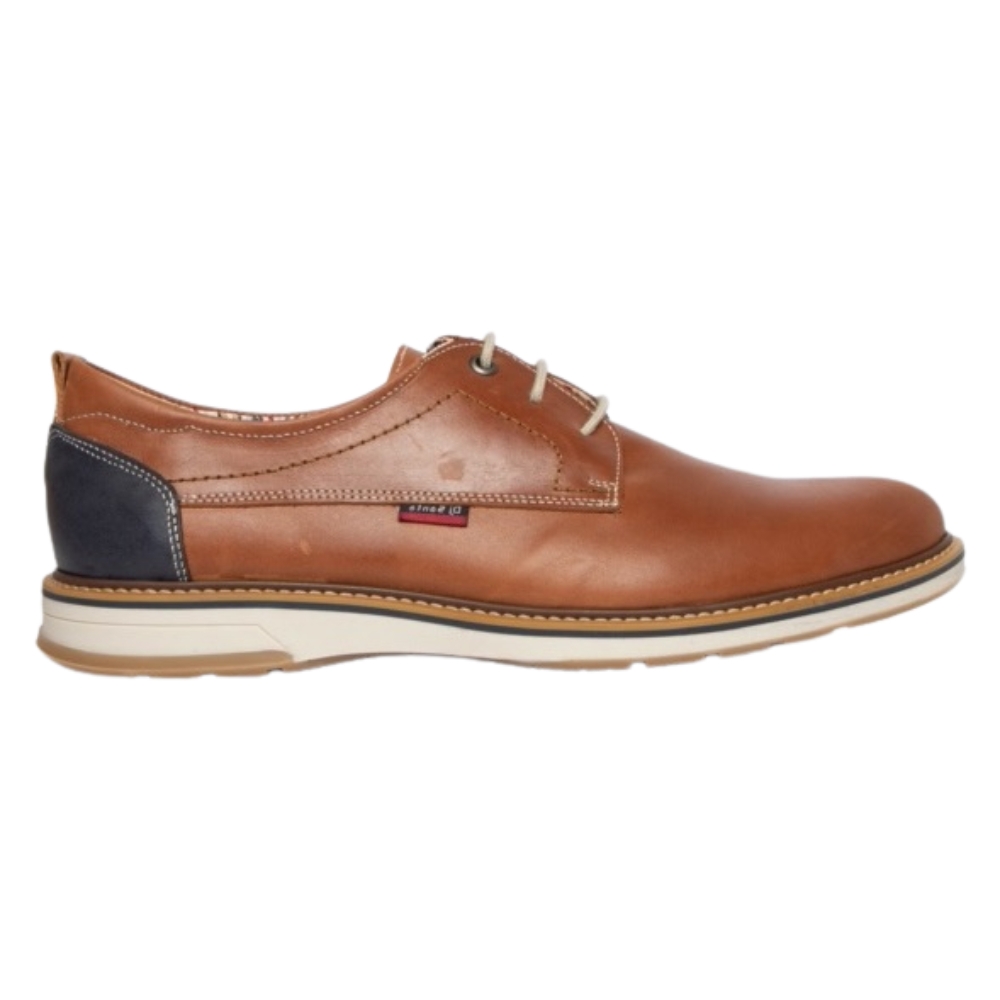 Zapato de vestir con suela tipo informal. Fabricado con piel de gran calidad y cierre de cordones. Color cuero